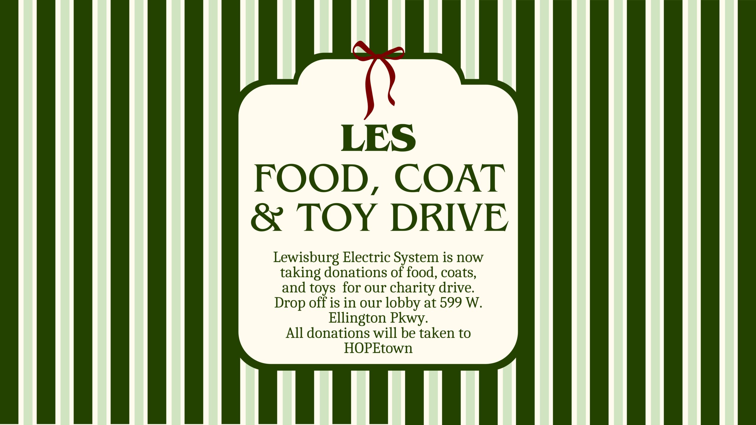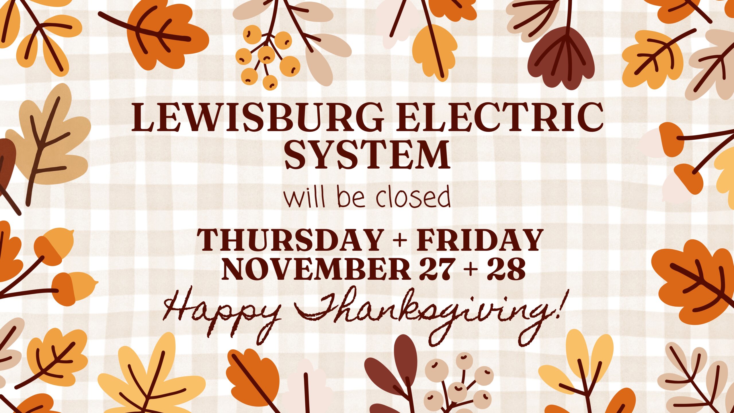 The Board of Lewisburg Electric System will hold their Board Meeting for December on Monday, December 29, 2025, at 5:00 p.m. The meeting will be held at the LES office, 599 W. Ellington Pkwy. The meeting is open to the public. Any LES customer who wishes to address the Board, must call 931-359-2544 by 12:00 pm on the last business day prior to the meeting to request to speak or learn more about providing comment.